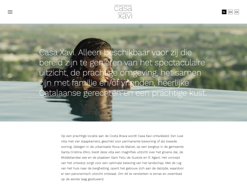 Hooyschuur architecten heeft SMIT. gevraagd om een ontwerp van Stef ontwerpt te vertalen naar een website die niet alleen voor drie vergelijkbare projecten in te zetten was maar in drie talen beschikbaar gemaakt kan worden. De website moet onderdeel zijn van de verkoopinformatie van dit luxe project aan de Costa Brava waar Hooyschuur met een partner drie villas realiseert.