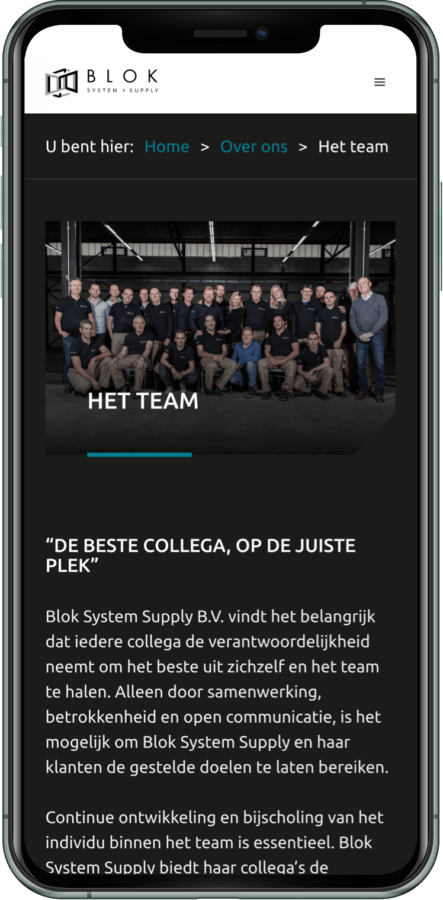 Eind 2020 hebben SMIT. en Blok System Supply opnieuw de koppen bij een gestoken om te denken over een website update. Hierin kwam vooral naar voren dat de klant een ander verhaal wilde vertellen op de homepage van de website. Ook de content pagina’s hebben we anders ingedeeld waardoor de gebruiker een overzichtelijkere pagina bekijkt. Onderaan de diensten pagina’s hebben we de andere overige diensten geplaatst. Mensen klikken daardoor simpelweg meer door op de website.